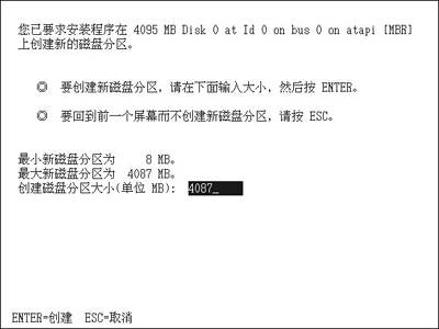 在C:\>提示符后面输入“diskpart”,然后按下回车键,会有一个全中文的图形模式供你使用(图2)。按方向键上或方向键下移动光标到“未划分分区”上,按下“C”,选择创建一个新的分区并输入新分区空间大小(图3),然后按回车键确认操作,这样C盘就创建完毕了。按照同样的方法把剩下的空间分配完毕,你的新硬盘就分完区了。下表列出了使用fdisk和diskpart的几点显著的区别(表1)。