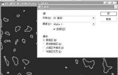 7.点“选择→载入选区”菜单命令,在打开的“载入选区”对话框中从通道中选取“Alpha 1”通道,然后勾选“反相” 选项,这样“Alpha 1”通道就被反选出来了,再按键盘上的“Delete”键,将反选的区域删除(图7)。