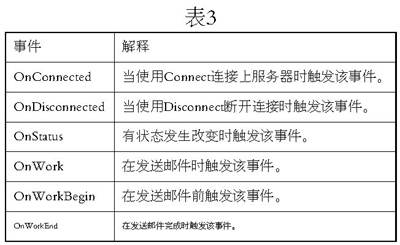 最后再讲讲IdSMTP控件提供的几个事件(表3)。