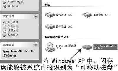 阿King提示:闪存的安装非常简单,WinMe、Win2000、WinXP等操作系统可以直接识别出闪存,因此在此类操作系统上使用闪存,只需将闪存插入主机上的USB接口中即可自动识别(图5)。