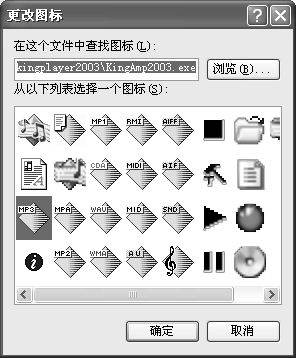 如果想修改图标,点击“更改图标”按钮,会继续弹出“更改图标”对话框(图5),你可从列表中选择或按“浏览”按钮找到你想要的图标。