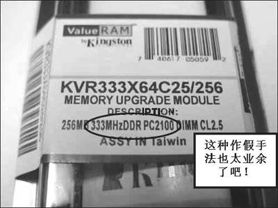 本来大家买Kingston盒装内存就是因为相信它的品质,而且仿冒品不多。可是,树大招风!这不,仿冒的Kingston DDR333内存就“面市”了!