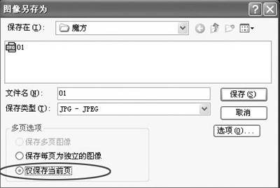 3.点菜单“文件→另存为”,在你的电脑中新建一个文件夹(如“魔方”),将修剪后的照片按顺序取一个文件名(如“01”),然后选择“JPEG”模式,在多页选项中选择“仅保存当前页”(图4),然后按“保存”。