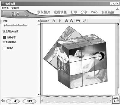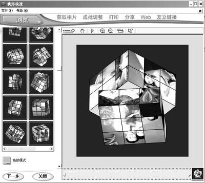 2.点功能区的“Web→魔方”,很快你就看到刚才我们选取的照片就生成了动态的魔方效果了,在左边有多种魔方的样式供你选择,选取一个你喜欢的样式吧(图6)。