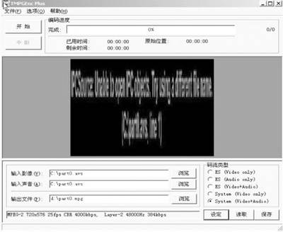 7.点击“确定”,回到TMPGEnc主界面,设定好输出文件名,单击“开始”,我们只需在旁边喝杯热茶,等待TMPGEnc压缩出漂亮的MPEG-2文件。