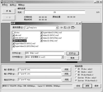 4.鼠标左键单击“读取”,在TMPGEnc 安装目录中/Template/选中DVD(PAL).mcf文件(图3),再进入TMPGEnc安装目录中的/Template/Extra中,选中unlock.mcf,unlock.mcf可以解除标准DVD固定参数不能设置的限制。