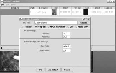 9.进入“Navigator”,在“File”中选择“open mpeg”,导入我们需要的MPEG-2文件,设定好开头和结尾。再进入“Composer”,在“edit”中选择“Insert”,我们所要的MPEG-2文件就被调到“Composer”中。选中“File”下的“Generate”,将“Sector size”数值改为“2304”。选择“Out File”,设置好输出文件名,单击“OK”(图7)。