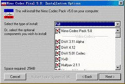 在安装的时候,会出现一个窗口(见图)让你选择安装哪些视频解码器, 它里面包含了很多音频解码器。你可以在需要的视频编码前打钩,当然,最省心的办法就是选择Full。