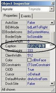 提示:“Object Inspector” 即“对象检查器”,有关程序中涉及到的窗体及控件的属性均在这里设置。