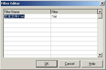 添加OpenDialog控件、SaveDialog控件、FontDialog控件,并点击OpenDialog控件和SaveDialog控件Filter属性右侧按钮,打开“Filter Editor”窗口,建立一个Filter(图6),起到以文本文件(*.txt)方式打开和保存所编辑的文本;