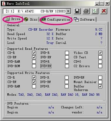 Software:软件,可以查看到操作系统、ASPI管理、刻录软件的名称和版本,实用价值不大。
