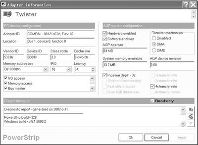 ①设备属性:这里可以查看硬盘的ID、序列号、修订版本、参数(柱面、磁头、扇区、字节)、缓存。比较有用的是硬盘的最大UDMA传输模式和现行UDMA传输模式,你可以查看硬盘是否工作在最大UDMA传输模式下,即是否已打开了ATA-66/100模式。