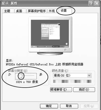 3.现在我们可以通过拖动“屏幕分辨率”上的滑块改变显示分辨率了。像素越多,图标、文字也就越小,屏幕上可显示的内容也就越多,反之则相反,简单吧?电脑是纸老虎,大家平时应多作尝试才是啊!