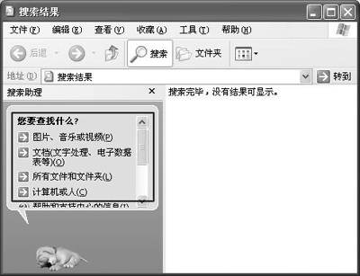 3.接下来搜索助理列表框里会出现如图2所示的页面,首先你可以选择文档最后修改的日期进行搜索,如上个星期内、上个月、去年一年内等等,要是真的一点也不记得了的话就选择“不记得”好了。然后输入在“完整或部分文档名称”框里输入文件名,如果有些文件名也忘了,可以使用“*”或“?”通配符来代替,例如要搜索所有W开头的文件,可以键入“W*”;若要搜索所有扩展名为DOC的文件,则可输入“*.doc”,然后点击下面的“搜索”按钮进行搜索,但是这样搜索出来的文件会很多,要进行人工筛选。