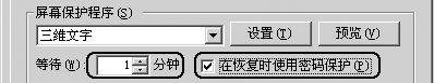 2.现在点击长长的那个下拉列表项(图2),里边是各类屏幕保护程序,例如这里咱们选“三维文字”,如果你等不及了可以按下“预览”看看效果,怎么样,显示的是旋转的“Microsoft Windows”文字。