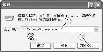 单击“开始→运行”。在运行对话框的①“打开”栏中键入想要打开项目的路径和名称,或者使用②“浏览”按钮来查找要打开的项目。然后点击③“确定”即可打开该项目。