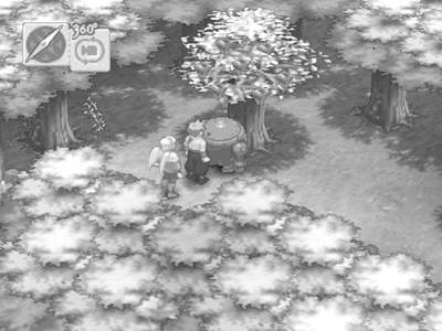 离开利普村往南的途中在森林里发现一只奇怪的生物,喂它吃鱼让它吃到肚子痛,离开森林后再次进入它就会消失。从森林的小路到达西方的公共之森,在这里发现有人生病,为了寻找治疗他的药草,众人返回利普村。从村人口中得知有一种药草可以治疗这种疾病,不过药草生长在东方的无名岛上。借船来到东方无名岛,让龙带队,用剑便可以取得药草。
