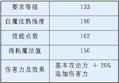 伤害力增加量:白魔法熟练度每增加4点,伤害力增加5