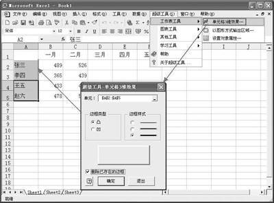 如果希望自己制作的表格与众不同的话,给单元格定义三维效果则是一个好方法。先用鼠标点取几个需要增加三维效果的单元格,接着点击“超级工具→工作表工具→单元格3维效果”选项。此时可看见图1所示的三维效果设置窗口,在此可以设定边框外观与边框样式,点击“确定”按钮之后就可以看见三维单元格了,这样一来就很醒目了。