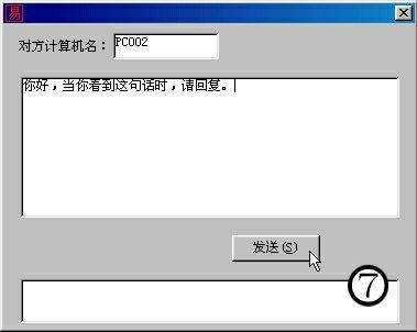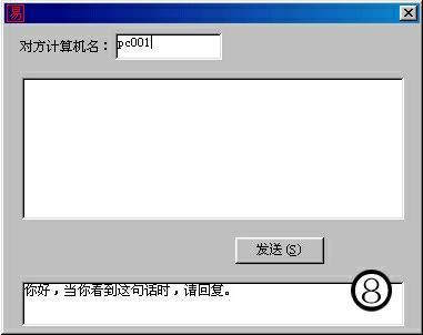 图7表示在PC001电脑上向PC002电脑发送前的样子。图8表示PC002接收到PC001发送来的信息的画面。
