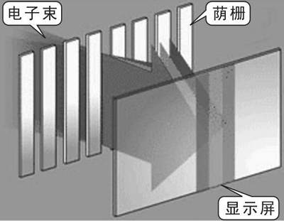 FD Trinitron采用了单枪三束电子枪和荫栅(Aperture Grille)技术。FD Trinitron采用一根电子枪来发射三束电子束。采用单枪三束的好处是可以获得非常优秀的色彩表现力。FD Trinitron的另外一个特点就是不采用荫罩结构,而使用“荫栅”(图5)。