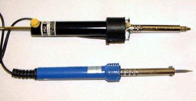 从电子市场买来一元左右的28脚或32脚空插座一只(或从废旧主板或网卡上焊下空插座),十几元的20~30瓦吸锡烙铁、尖头烙铁各一只(图1)。