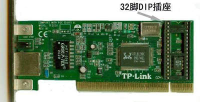 通过仔细观察,可以发现8139网卡的28脚插座上留有四个空焊点。这就是我们今天改造的突破口。将空插座用锯条锯下四个插脚,用吸锡烙铁小心吸完网卡上四个空焊点的锡,再将锯下的四个插脚用尖头烙铁小心地焊在网卡上(图2)。