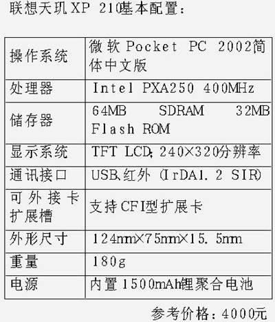联想天玑XP 210掌上电脑