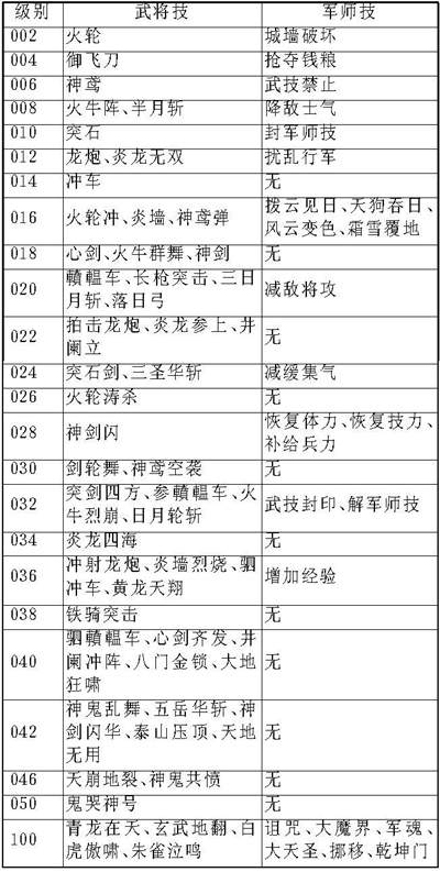 武力和智力同为200能学的武将技和军师技表(1-100级、游戏版本:1.021):