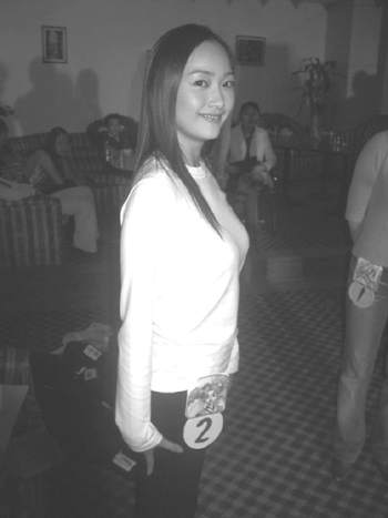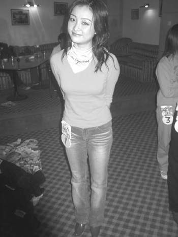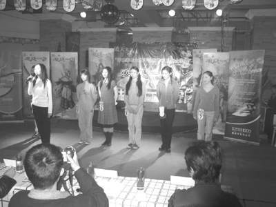 评选最重要的组成部分就是各位MM的才艺表演和游戏问答。MM们大多都想表现自己能歌善舞的一面,表演了大量精彩纷呈的节目。在这个过程中现场的观众真可谓大饱眼福,阿当利用自己优势的地理位置也取得了不少便利,不仅在近距离欣赏了表演,还抓拍了不少极具艺术欣赏价值的照片。可惜的是好事多磨,数码相机在阿当的疯狂使用下,电池终于光荣退役!可怜的是比赛还没有进行到一半。后面的精彩镜头必定不少,阿当却只能摇头苦笑了。