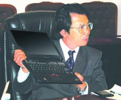 3月19日,当内藤在正再次面对本报记者时,设计师的身份表现得更为突出。记者与内藤在正先生同时进入会议室,注意到内藤在正先生随身携带着一个电脑包,在随后回答记者提问时,从包里拿出了IBM著名的笔记本电脑T40,还有被他称为“秘密武器”的9毫米超薄互换光驱。凡是有关ThinkPad的技术细节,他都拿着笔记本电脑、指着相关部件详尽解答。