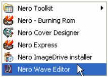 我的电脑安装的操作系统是Windows XP英文专业版+SP1升级包,光盘刻录软件选用的是Nero Burning Rom 5.5.10.15a加中文升级包。当安装完Nero Burning Rom后,录音软件也就有了,它就是Nero自带的Nero Wave Editor 1.0版 (图2)。