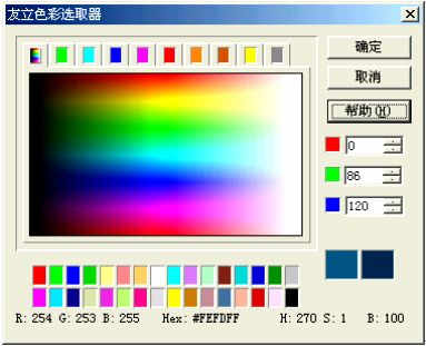 第五步:调整边框颜色。单击右侧的色彩方框,在弹出的色彩下拉菜单中可以直接选择需要使用的边框颜色,也可以选择“友立色彩选取器”或者“Windows色彩选取器”选项,在弹出的对话框中选择自定义的颜色,这样选择的颜色会更贴近你的视频(图3)。