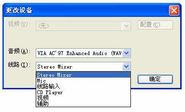 利用Movie Maker不仅可以录制在线播放的音乐,还可以通过选择设备和线路录制其他设置的音频信号。单击“录制”对话框中的“更改设备”按钮,弹出更改设备对话框(图4),