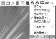 如果不分类也可用左键将该文件夹拖至屏幕最上方,松手后会出现一工具条,在其上点击右键可方便地修改外观(如图3)。譬如选择自动隐藏,那么只有在鼠标移至屏幕最上方时,该工具条才出现,离去时自动隐藏。