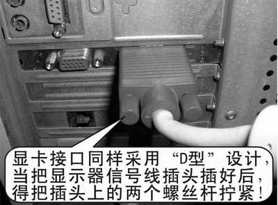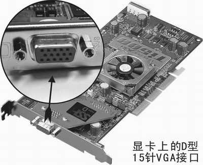 显示器家族之所以能够产生千变万化的图像及色彩,都是因为上面时时刻刻有“指示”。而发送“指示”的就是显卡将军了。为了接受显卡将军的“指示”,它和大哥都有一个专用的接口与它进行通信(图4):