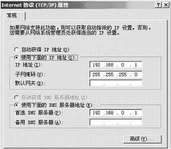 ⑶选择“Internet协议(TCP/IP)”,单击“属性”按钮,打开“Internet协议(TCP/IP)属性”对话框,并输入相应的IP地址与子网掩码(图2中是PC1的具体设置)。