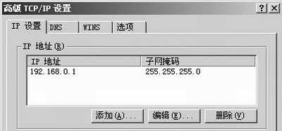 ⑴在图2中单击“高级”按钮,得到如图3所示的“高级TCP/IP设置”对话框。