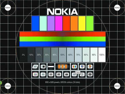 划伤是指屏幕上是否有指甲或其他硬物的划痕,这一点很容易分辨。坏点的识别除了靠一些软件辅助识别外,主要还是要靠眼睛的观看分辨。我们可以借助的软件是一款由NOKIA出品的NTEST(下载地址:http://www.sundigi.com/download/getfile.asp?id=158)这是一款辅助分析LCD的工具,界面很简单。在这里我们可以进行各种测试,色阶、颜色纯度、等等,我们挑坏点需要用的是其中的COLORS。在这个选项中,软件会在全屏幕的状态下,不时地切换白、红、绿、蓝、黑五种颜色,这样就方便大家找到或亮或暗的点。LCD的缺陷点分为:亮点、暗点、坏点(我们这里用坏点做统称)。