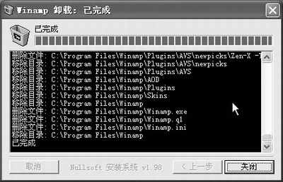 豆仔提示:对于一些软件在完成卸载后还可查看删除的具体信息,像Winamp我们便可在卸载窗中单击“显示详细资料”钮观看到哪些文件已被删除(如图5)。