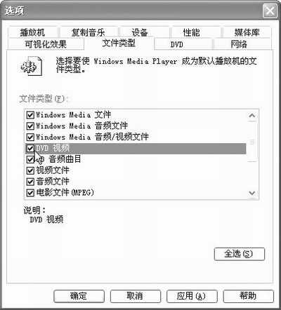 在“工具”菜单上单击“选项”命令,打开“选项”对话框,再单击“文件类型”选项卡,在“文件类型”中,选择“DVD 视频”复选框,即可实现DVD的自动播放。