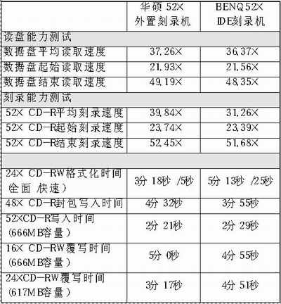 本次测试我们用同样是52×的IDE接口刻录机来做对比,看看内置和外置刻录机有什么区别。另外,我们将对CD、数据碟、CD-R进行读取测试,以及对不同CD-R、CD-RW碟片进行刻录测试。