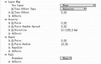 11.再制作一个新的720×488Composition命名为Matrix Grid,拖拉先前做好的Property Map Comp到Matrix Grid的时间轴线来,并把他们的眼睛隐藏,因为我们只要使用它的动态灰阶影像。同时新增一层全画面黑色色层,命名为Matrix Text Grid。放入特效,点菜单“Effect→Simulation→Particle Playground”。打开Particle Playground控制窗口,单击Options选项,在Edit Grid Text…中输入任何一个英文字母,这里使用a,同时选中Use Grid 和Loop Text。在Cannon、Grid、layer Exploder 、Particle Exploder选项里依照下图输入数字,Cannon、Grid中的Color选择绿色。