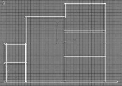 将顶视图最大化,用曲线中的“矩形”工具将户型图中的墙体逐一绘出,取消背景视图显示,对不合适的线条逐一调整到合适位置(图2)。