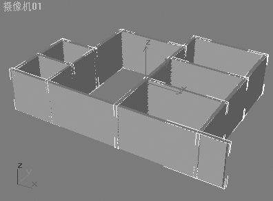 通过“网格编辑”中的“拉伸”命令对所有的矩形框进行适当高度的拉伸。在透视图中调整好观察的角度,任意架设一台摄像机,通过“视图”菜单中的“使摄像机与视图匹配”命令将透视图切换成摄像机视图(图3)。