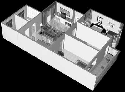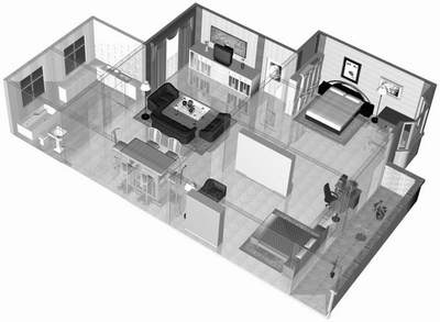 对于室内家具和物品如果逐件手工设计的话,那将会耗费你大量的时间,所以这些物品可以直接在一些3D素材中拷贝过来即可。摆放这些物品的目的也是对住房的空间进行一个合理的规划,入住时便于对家具等用品进行采购(图6)。