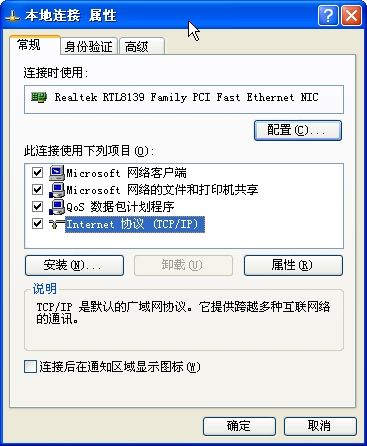 怎么解决这个问题呢?只要在“控制面板→网络连接”里,用鼠标右键单击“本地连接”图标,然后选择属性,在弹出的属性窗口(如图)的“常规”选项卡的列表里选择“Internet协议(TCP/IP)”一项,然后单击“属性”按钮。在弹出的属性窗口中,选择“使用下面的IP地址”选项,并在“IP地址”和“子网掩码”中分别输入“192.168.0.1”和“255.255.255.0”,最后单击OK退出设置窗口。