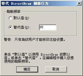 注意:在“替代值”中设置屏幕刷新频率的时候,所设置的屏幕刷新频率不能超过你所使用的显示器在相应分辨率下所能支持的最高屏幕刷新频率,否则会对显示器造成损坏。