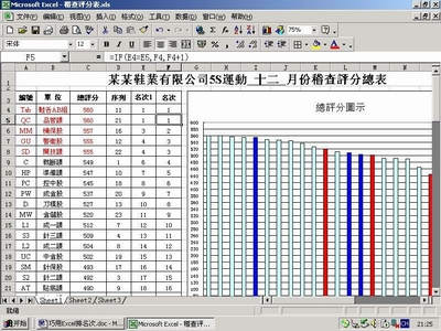 许多公司企业为了加强管理,都要对内部各个部门定期进行量化评分考核并排列名次,激励表现良好的部门,敦促改进落后部门,使公司管理不断完善发展。面对无序的积分,在不改变各个部门原有位置的情况下给它们进行排列名次可是一件十分棘手的事件,尤其存在相同积分相同名次的排列更增加了难度。但如果能巧妙应用排位函数“Rank”及灵活应用Excel排序功能,问题解决起来也就比较简单了。现以某鞋业有限公司的稽查评分总表(如图1)为例来阐述解决方案。