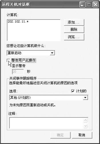由于Windows XP的网络功能涉及范围非常广,所以其中很多功能都可能被非法用户利用,从而导致系统安全危机。例如当黑客利用远程映射Windows XP默认共享磁盘的方法将木马拷贝到用户的电脑并加入启动组后,再通过如下操作使用“从远端系统强制关机”的功能,使用户的电脑莫名其妙地重启或关机,从而控制该电脑。